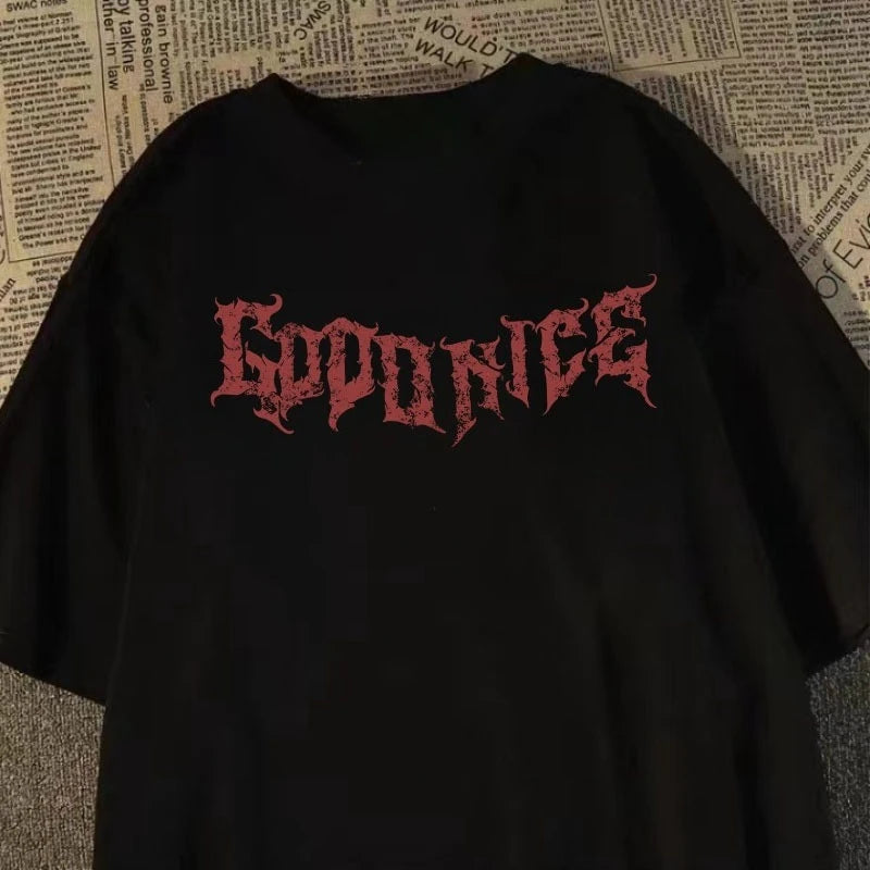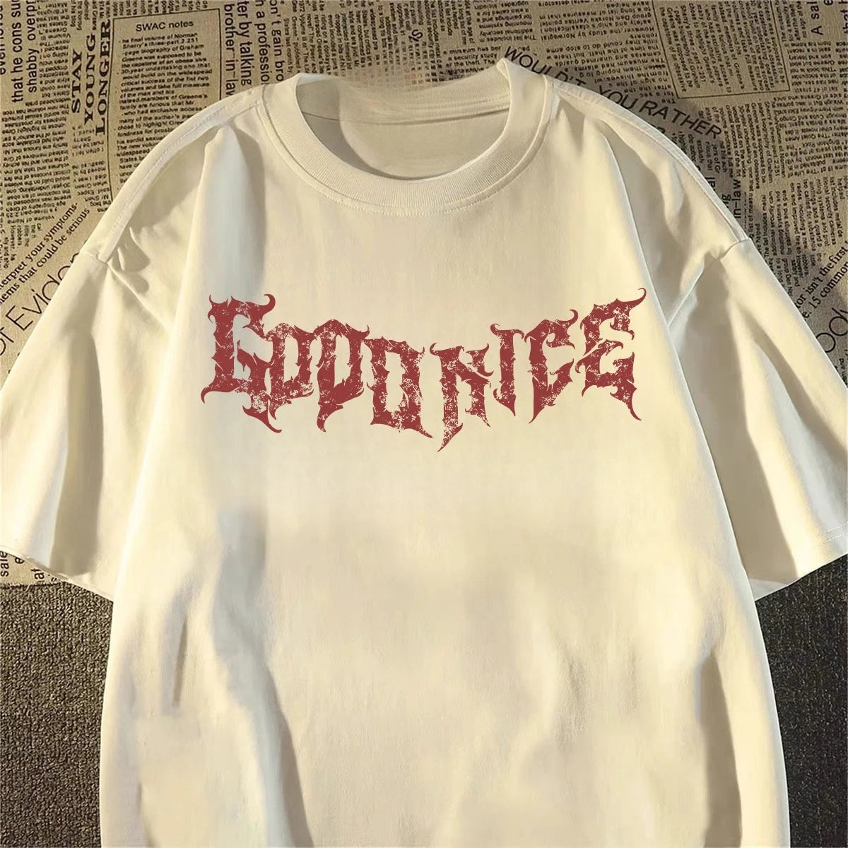camiseta pesada de manga curta americana retro espada-ponde anjo impresso de manga curta